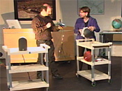 Astronomer Linda Shore demonstrates how the earth's tilted axis affects where sunlight strikes the earth as the planet orbits the sun. ( Watch movie )