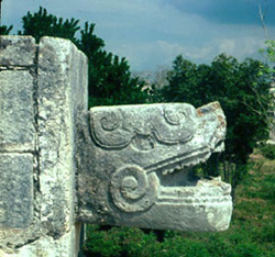 The Toltecs had settled at Tula, near modern-day Mexico City, around AD 900 under the rule of a king named Topiltzin. Topiltzin also took the name of Quetzalcoatl, or “Feathered Serpent,” the name of an Aztec god. A rival warrior faction forced Topiltzin Quetzalcoatl and his followers out of Tula around AD 987. Mayan historical sources mention that in the period that ended in AD 987, a man who called himself Kukulkán arrived in Chichén Itzá from the west (