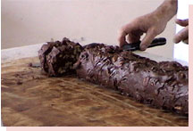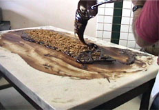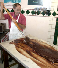 The final stage of the paddling is an artful arrangement of the fudge into a long loaf, ready for slicing.