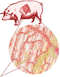 muscle fibers with blowup of a coiled protein, before