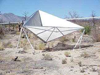 bizzare sculpture on the Pinon Flat landscape; the satellite radar retroreflector.