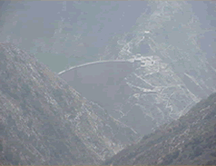 in early morning fog/smog, the 113-meter-tall Pacoima Dam was constructed
