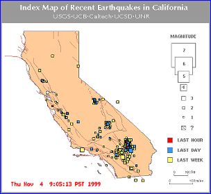 | TriNet is a web of over 600 seismometers across Southern and Central California. These seismometers are located underground in phone company control rooms, electrical company switching stations, and in specially-constructed underground vaults. Whether they are "strong-motion accelerometers" or "broad band seismometers", these instruments all send measurements of seismic movements via digital phone lines, radios, microwave links and the internet back to the Caltech Seismo Lab in Pasadena, California. When an earthquake happens , TriNet is how computers and geologists are immediately able to determine where exactly the earthquake occurred and how strong it was. |