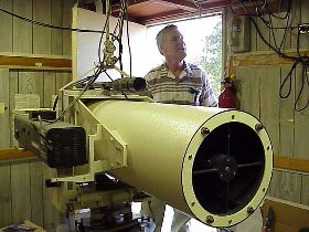 This sleepy little central California town , which sits atop the San Andreas fault, has been hit with a magnitude 6 earthquake about every 22 years since 1857. The frequency and regularity of this quake action attracted many geologists and research projects to Parkfield in the 1970s and 80s, all hoping to collect data that would help us predict quakes both in Parkfield and elsewhere. Ironically, the Parkfield "22-year quake" chose not to occur at its regular interval in 1993, but scientists are still waitingÑmonitoring and measuring all the while. Duane Hamman, in fact, has been taking measurements for the USGS in Parkfield with a rare laser geodimeter (shown at right) for 14 years. A laser geodimeter is really just an ultra-precise ruler that can measure large distances with extreme accuracy. Here's how it works: A technician beams laser light at one or more reflectors up to 6 miles away. The amount of time it takes for the light to make a round trip to the reflector and back is a function of the distance between the laser and the reflector. Repeated measurements reveal whether the earth is changing shape. If the light returns just a tiny bit earlier than before, it means that the two points have moved closer together. If the light is a little late, then the two points have moved apart. This technique is extremely accurate; it can measure shifts in distance as small as a millimeter. In practice, measuring distance with lasers poses some problems. The path between the laser and the reflector must be completely clear of obstructions, and fog and rain can block the laser beam. Also, the speed of light traveling through air changes with the air's temperature and pressure. Accuracy demands that these slight changes be factored into the calculations. |