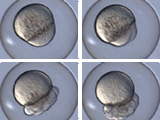 This series of images depicts the process of mitosis in the early embryo of the fruit fly.
