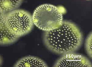 exists as a spherical colony of individual cells. Each cell has two whiplike appendages called